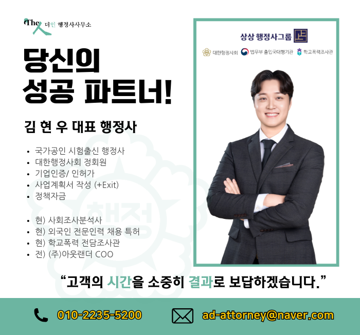 안녕하세요. 기업 성장의 이정표를 알려드리는 김현우 행정사입니다.